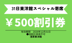 「31日東洋館スペシャル寄席」公演ご来場のお客様に、500円割引券をプレゼント!!